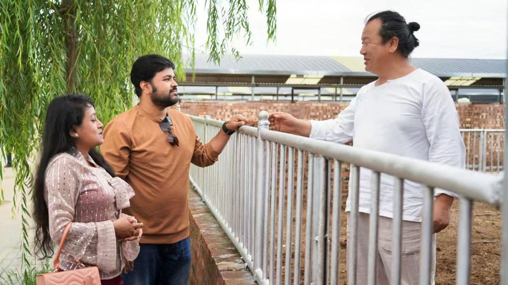 随后,大家前往横山区现代化陕北羊养殖基地参观,感受数字化、规模化的养殖产业链,了解科技如何助力农业增效、农民增收,并打造出“横山羊肉”这一特色品牌。基地负责人详细介绍了养殖户通过联合经营、品牌化发展实现经济提升的路径,留学生们对横山在乡村振兴中取得的成果表示钦佩。